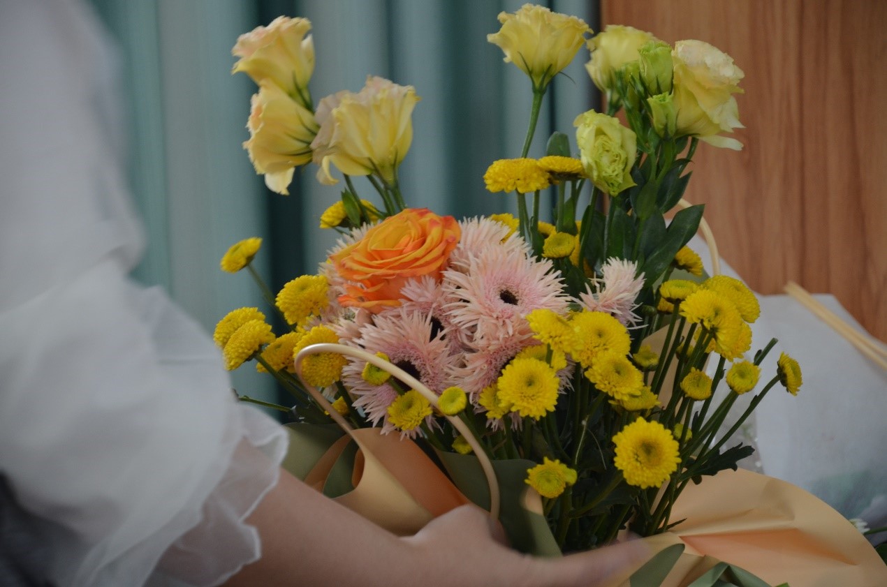 李林教授在花艺基础知识讲座中,从花材种类、颜色搭配、造型原理、作品鉴赏以及插花创作等方面为老师们科普鲜花花语和插花技巧,并现场展示经典插花造型。女教工们在老师的悉心指导下,大胆发挥自身想象力,根据手中的花材特点、颜色,创意修剪、搭配,每个人脸上都洋溢着幸福快乐的笑容,在轻松愉快的氛围中感受插花艺术的魅力,一束束错落有致、创意十足的“私人定制”花艺作品在老师们手中被赋予了新的芬芳。