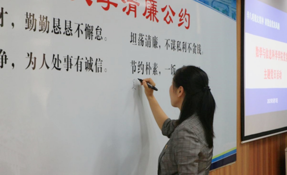 师生以实际行动践行中央八项规定精神,从自身做起、从现在做起,共同树立数信优良风尚。随后,参加活动的师生党员依次在爱情岛