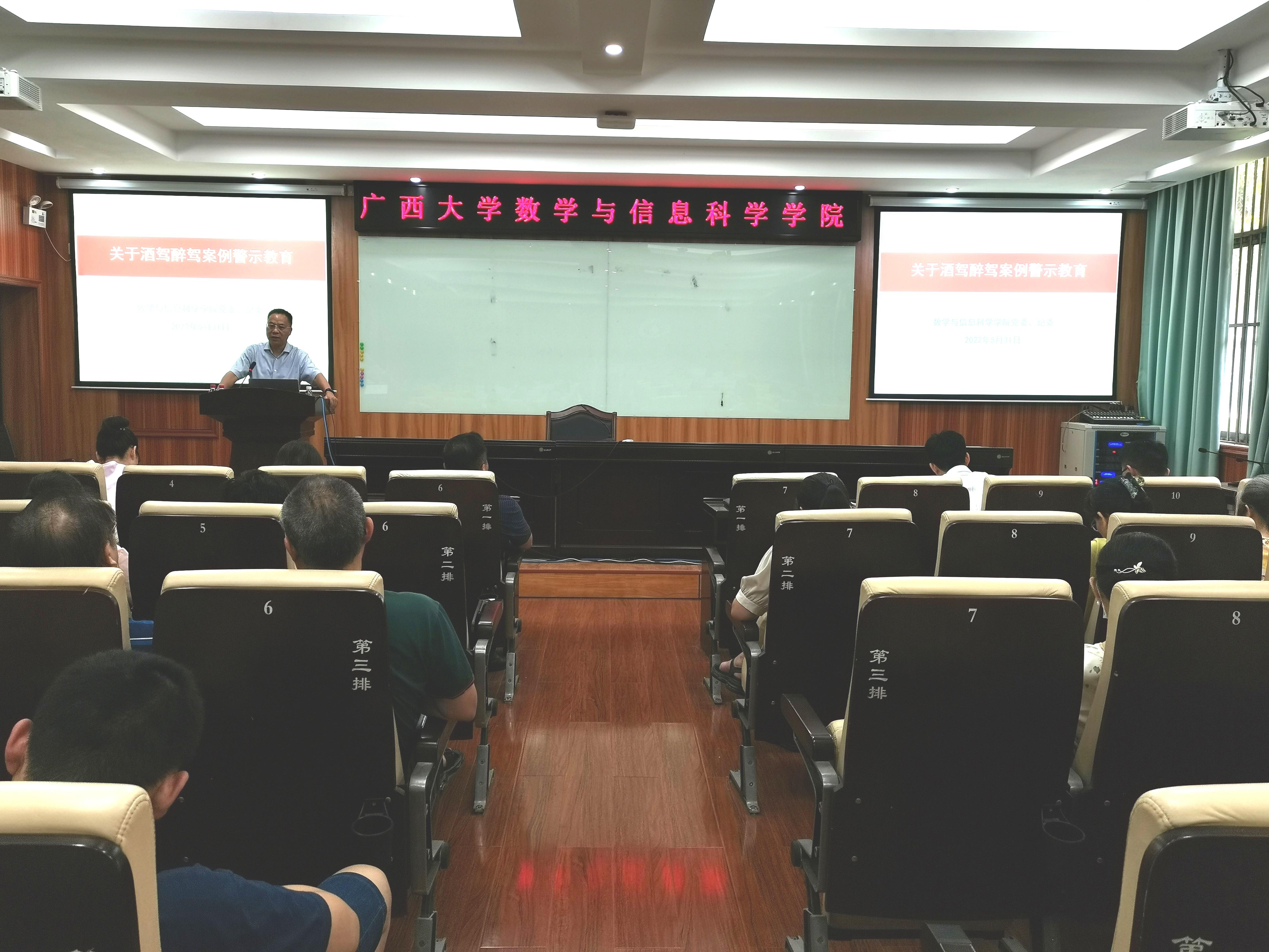 党委书记黄建荣指出,学校纪委通报的我校5起酒驾醉驾酒驾醉驾违纪违法问题案例,给全体教职工敲响了警钟。他还强调,广大党员干部、教职工要切实从这些案例中汲取教训,引以为戒,本着对自己、对家庭、对社会、对组织高度负责的态度,时刻自重自警自励,做遵纪守法的模范;要深刻认识到酒驾醉驾表面上看是普通的违纪违法行为,实际上是典型的“四风”问题,严重败坏党风政风,威胁群众生命财产安全。作为高校党员干部和教职工,肩负着立德树人的使命,其酒驾醉驾行为之害更甚于普通群众,会严重损害党员干部、教师的良好形象,对社会造成的影响极其恶劣,一定要严格做到遵纪守法,坚决不能以身试法,杜绝酒驾醉驾违纪违法问题的发生。