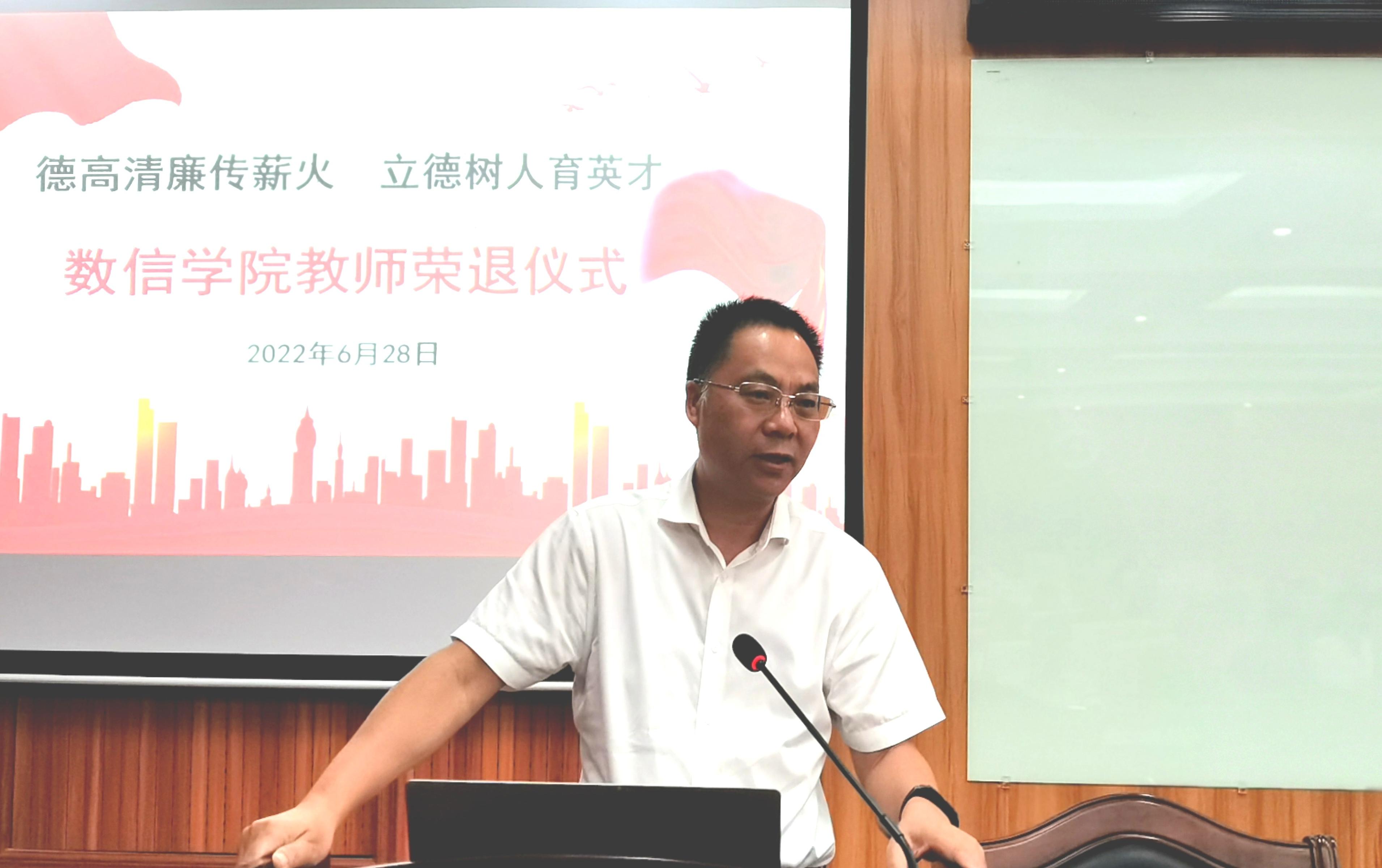 院长郭真华对5位教师在教学、科研及承担的公共服务等方面所做的工作和取得的成绩进行了介绍和总结。他感谢各位退休教师在职业生涯里对教师事业的选择和坚守;感谢他们的认真和执著,为学校和爱情岛