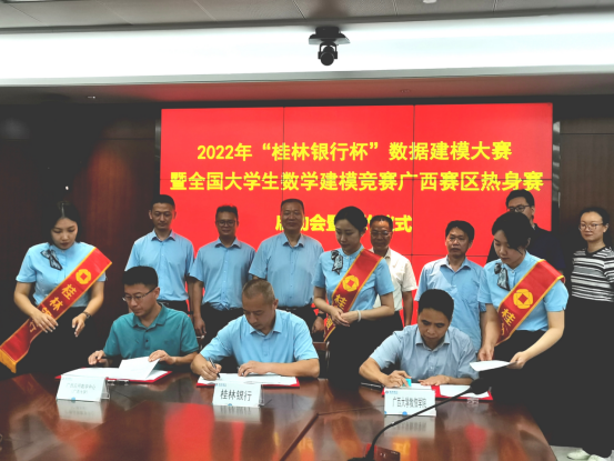 )和桂林银行三方在南宁桂林银行大厦举行2022年“桂林银行杯”数据建模大赛签约仪式,标志着“桂林银行杯”数据建模大赛暨全国大学生数学建模竞赛广西赛区热身赛正式启动。仪式由桂林银行数字银行管理部总经理赵泓主持。