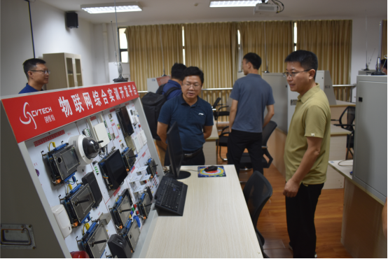每年在互联网+大赛中取得优异成绩表示祝贺。然后介绍中心成立目标就是要立足广西、服务广西政府企业,同广西业界一起共同推进广西产业升级发展情况。在周院长一行的带领下,中心团队一同参观了物联网实验室、实训室等学生实践教学基地。