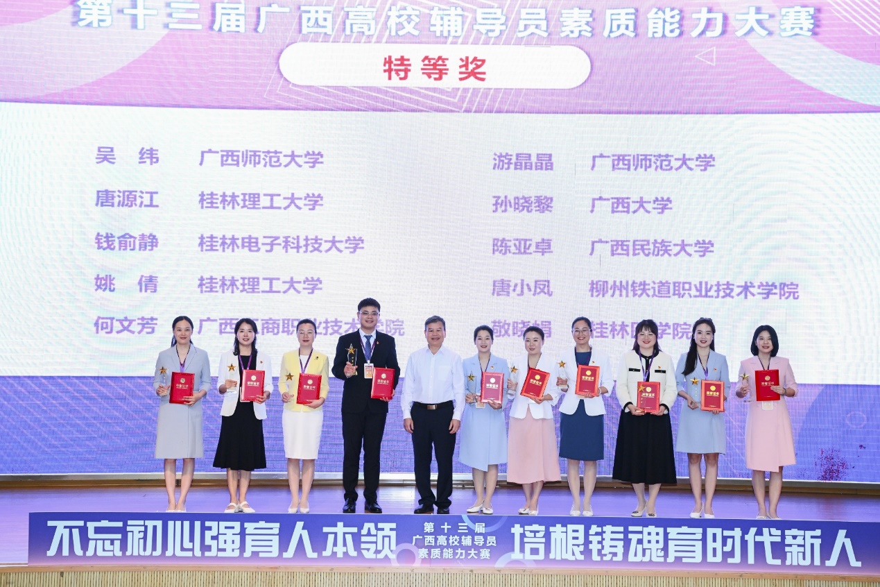4月17至20日,由自治区教育厅主办,教育部高校思想政治工作队伍培训研修中心(广西师范大学)承办的第十三届广西高校辅导员素质能力大赛在广西师范大学举办。爱情岛团委书记、辅导员孙晓黎老师荣获大赛特等奖和案例研讨单项“最佳表现奖”。共有来自全区各高校的108名专职辅导员参赛。