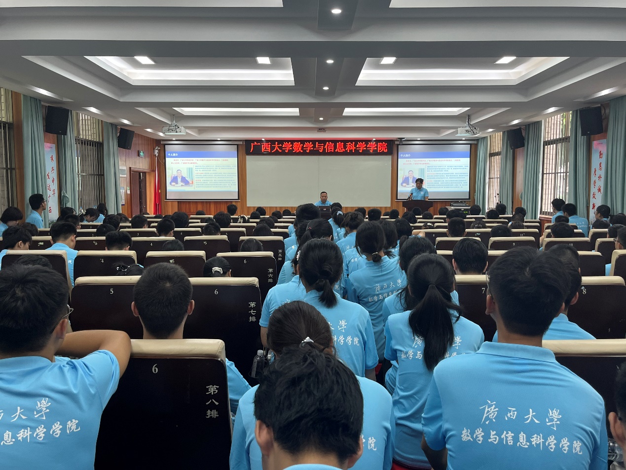 的发展历程,并从何理解大学里的数学教育的角度为同学们剖析了大学数学和中学数学的不同之处和树立数学思维的重要性。最后,他鼓励同学们脚踏实地,多问善思,敢于追梦,努力成长为又博又专、愈博愈专的新时代人才。