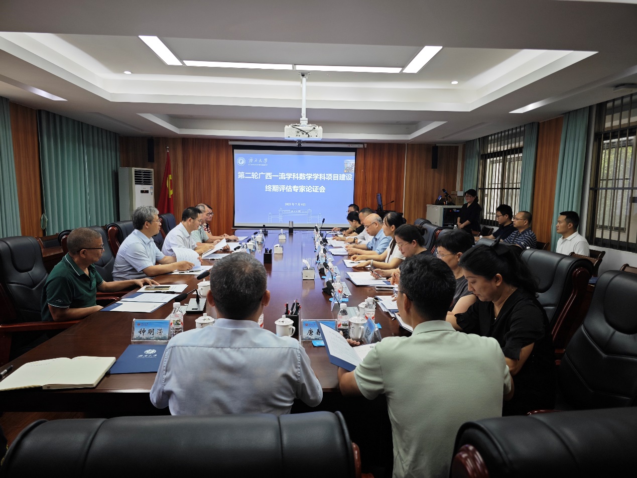 及数学学科的建设发展情况,并指出本次评估旨在系统梳理和评价本轮一流学科建设成效和经验,明确自身定位,精准把握学科发展方向,合理规划发展目标和路径,发现和解决制约学科发展的深层次问题,推动我校数学学科更好地服务国家重大战略需求和广西经济社会发展,希望专家多提宝贵意见与建议。他要求数学学科会后要认真梳理、落实专家意见,深化对一流学科内涵的理解,加强学科内涵建设,推动学科发展再上新台阶。