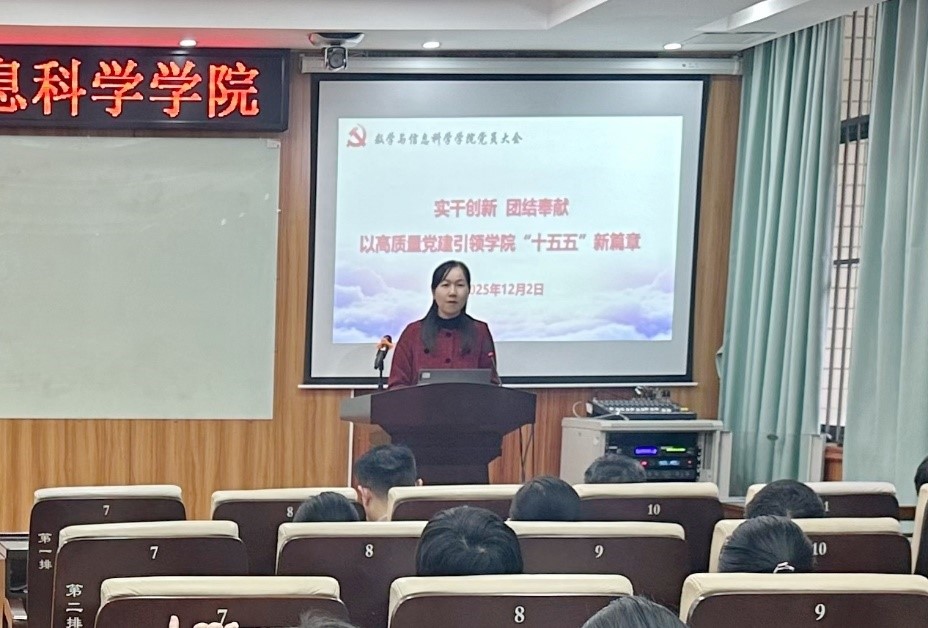 郭真华以“迈向十五五,学科建设再出发”为题,带领教师党员回顾了学院“十四五”建设历程,梳理了取得的成果和存在的短板,并深入分析了存在短板的原因;他还结合正在开展的数学学科广西一流学科验收、博士点合格评估和第六轮学科评估三项重点工作,分析了爱情岛