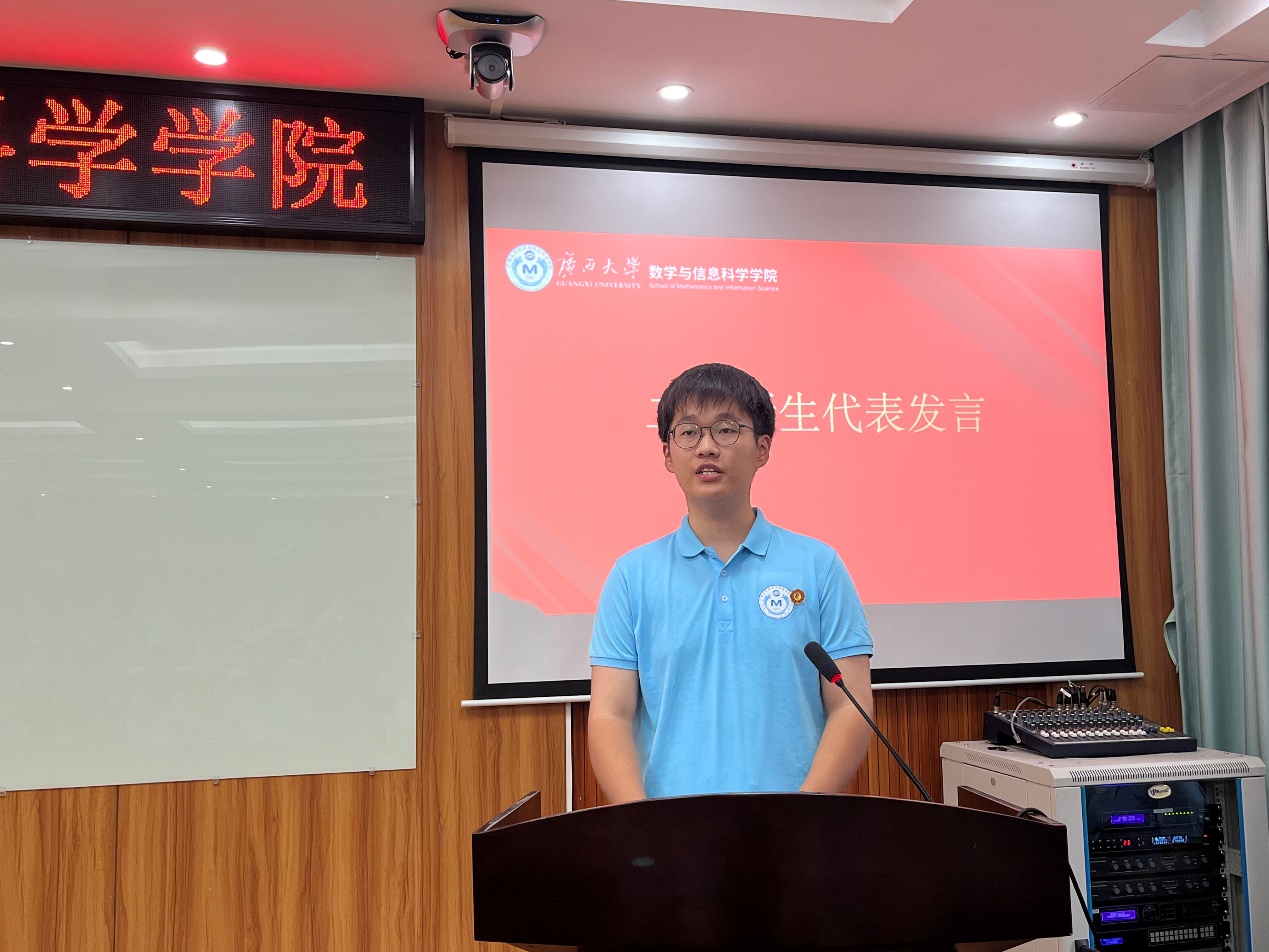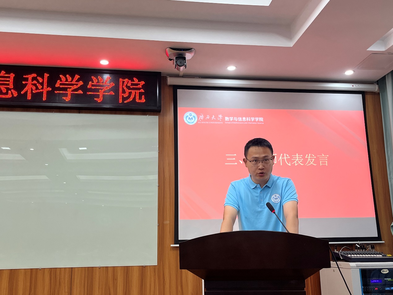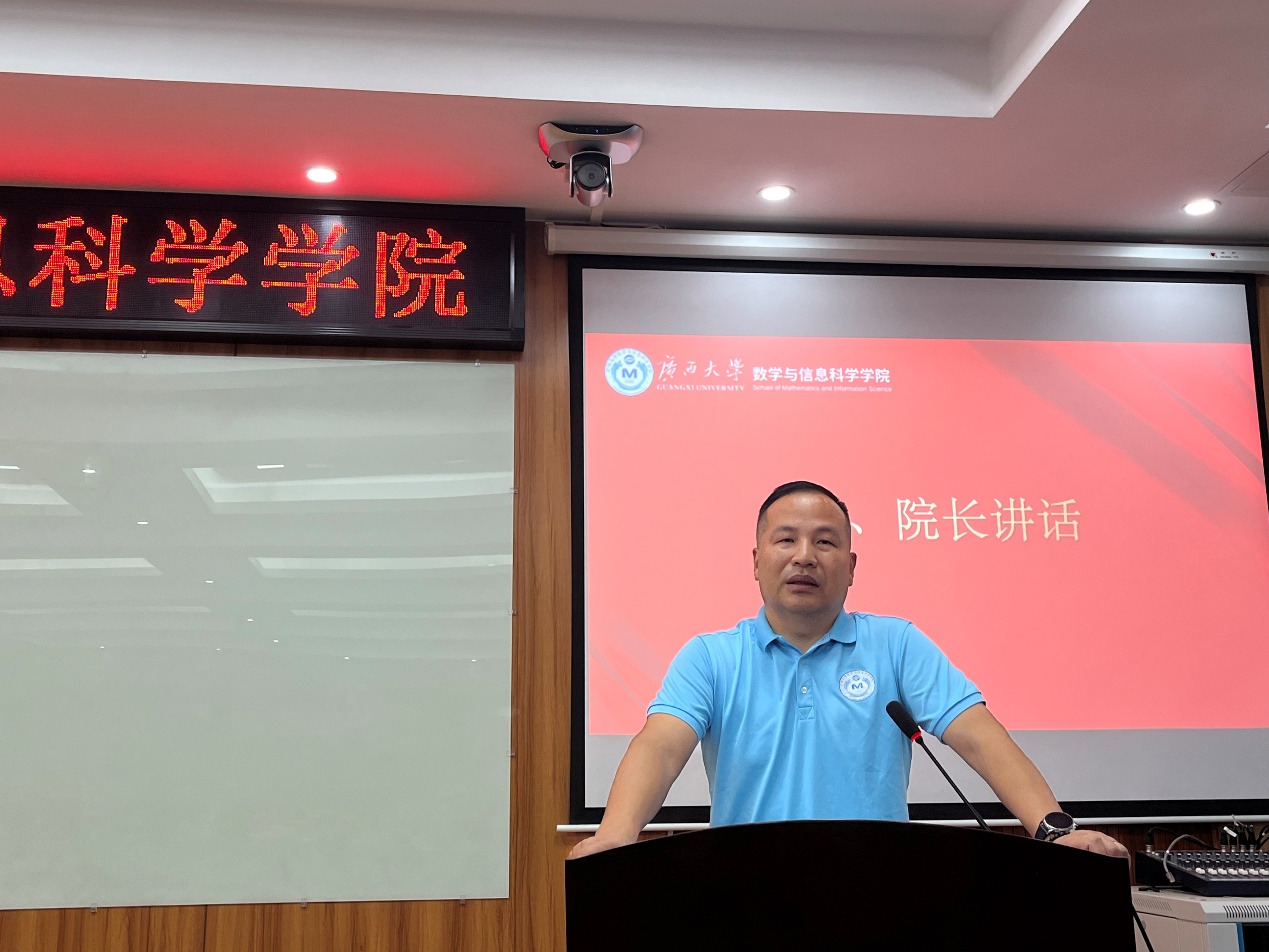 向今年入学的126名本科新同学、68名硕士研究生和16名博士研究生新同学表示热烈欢迎和祝贺。他指出,数学教育不仅仅是知识传授,更是逻辑思维和科学研究能力的培养。他强调,大学不是独木桥,比拼的不应该只有绩点的内卷,要全面发展,要注重培养大人格,研究大学问,涵养大胸怀,积蓄大能量。最后,他对新生们提出了三点要求:一是要读懂什么是大学。大学期间要不断地发现、探索自我,在打牢基础的同时留意寻找自己的兴趣和优势所在,学会思考,学会选择。二是要尊重老师,敬畏学术。要学会感恩老师的传道授业解惑,对待学术,应该时刻保持敬畏之心,恪守学术道德。三是坚持锻炼,强健体魄。良好的身体素质是做好学问的前提。拥有强健的体魄可以让同学们有足够的精力和耐力去应对长时间的学习和思考,提高学习效率,增强抗压能力。
