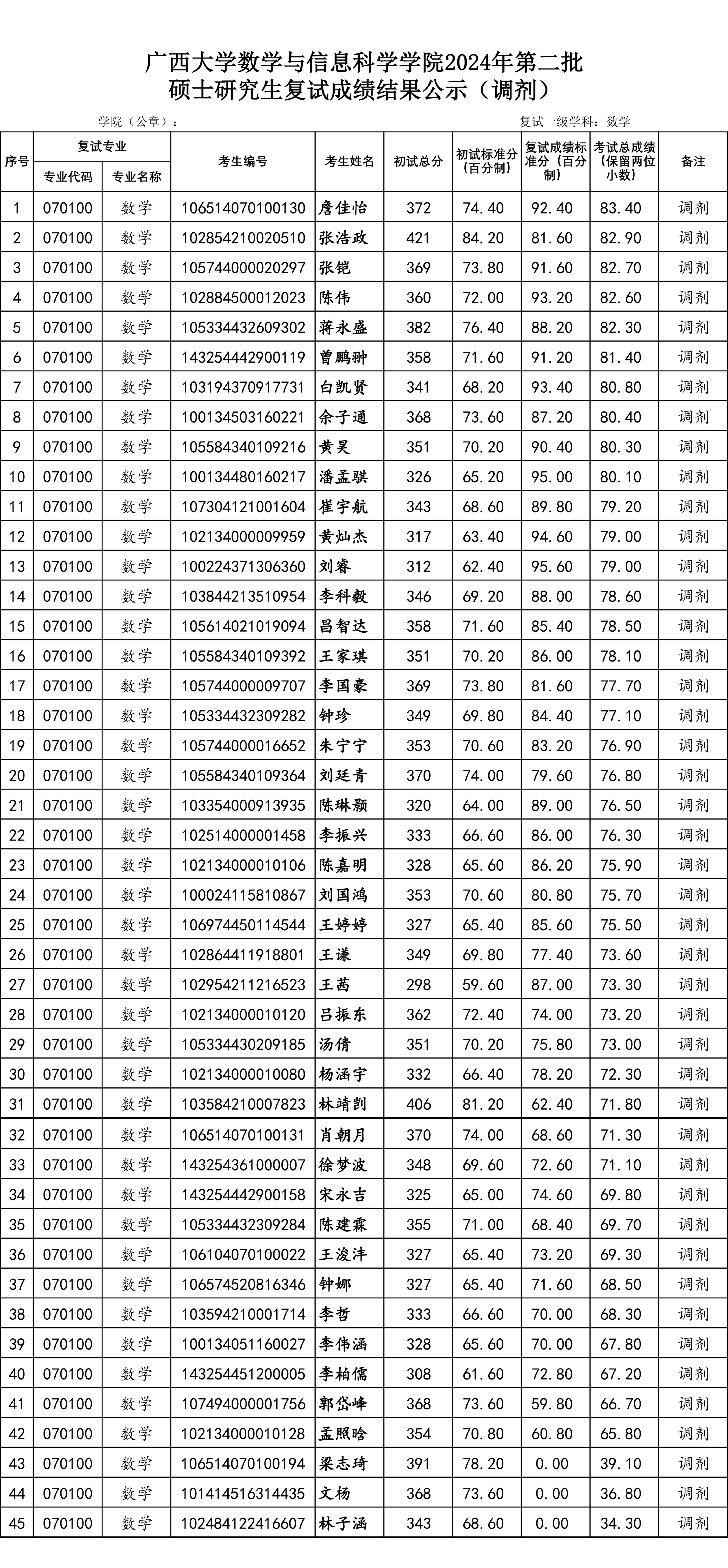 爱情岛 2024年第二批硕士研究生复试名单公示(调剂考生)