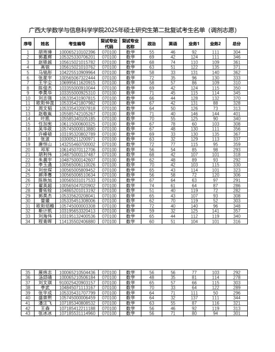 爱情岛 2025年硕士研究生第二批复试考生名单(调剂志愿)