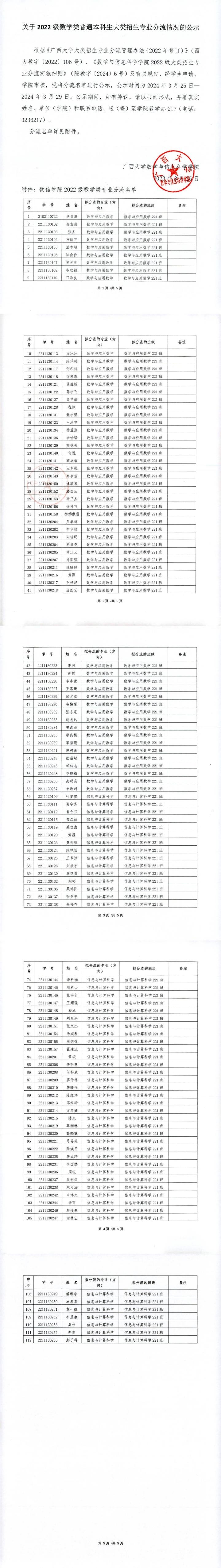 关于2022级数学类普通本科生大类招生专业分流情况的公示