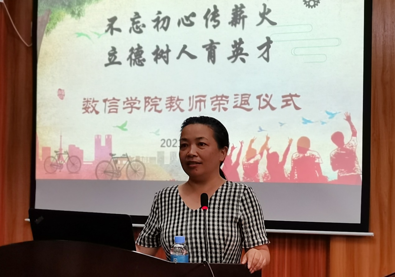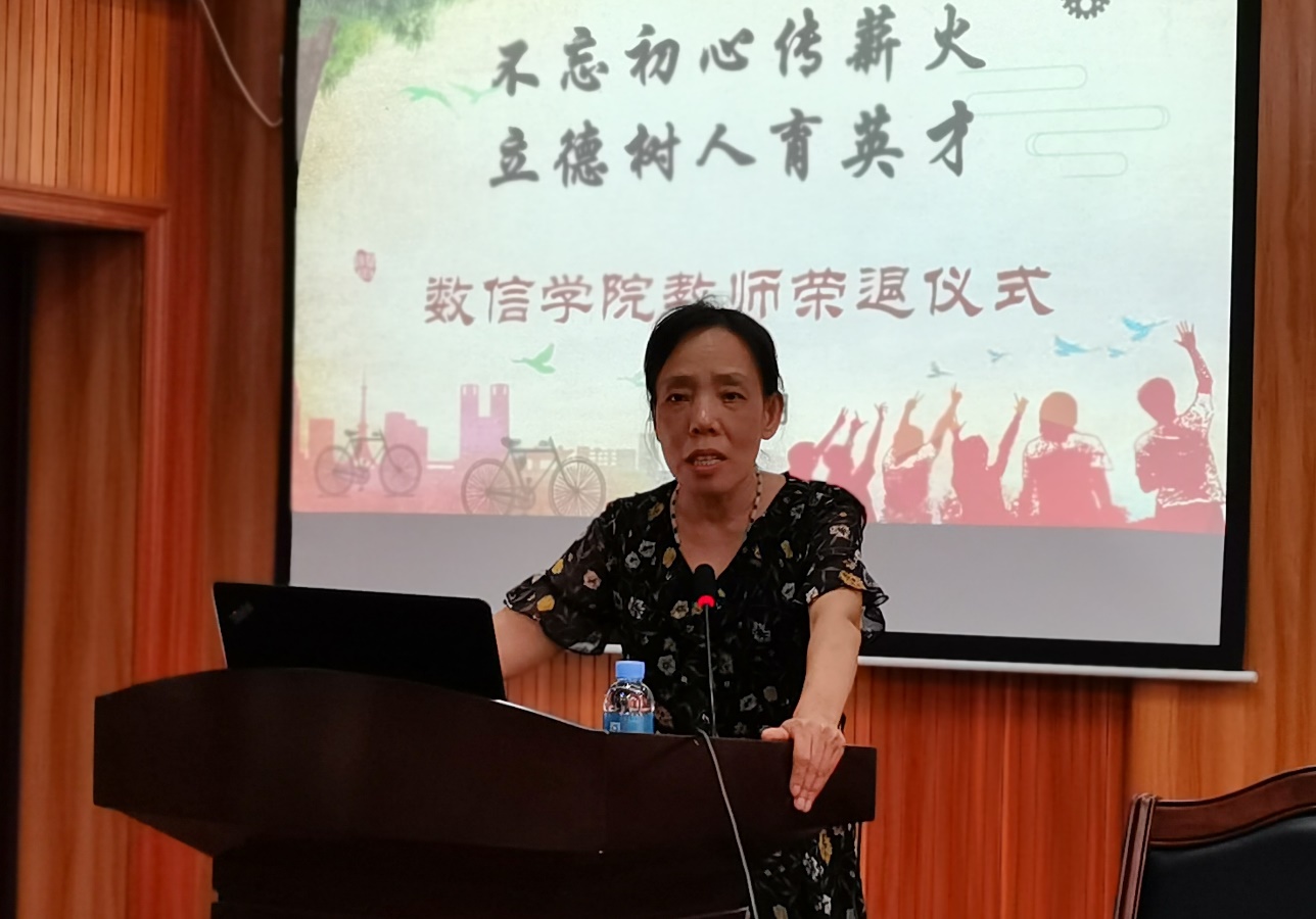 在人才培养、学科建设和社会服务等方面的每一次变化,每一步发展,都离不开每一位老师汗水和智慧的付出。黄建荣书记强调,大爱无疆,是数信老师最美的本质;艰苦奋斗,是数信老师最纯的本色;求真务实,是数信老师最难得的本真。这些都已融进了数信精神的内涵之中,激励着每一位数信人砥砺前行。最后,黄建荣书记希望三位退休教师能科学、健康地安排好退休后的生活,拥有美好的荣退时光;希望她们能够“退休不退志,离岗不离心”,继续关心和支持爱情岛